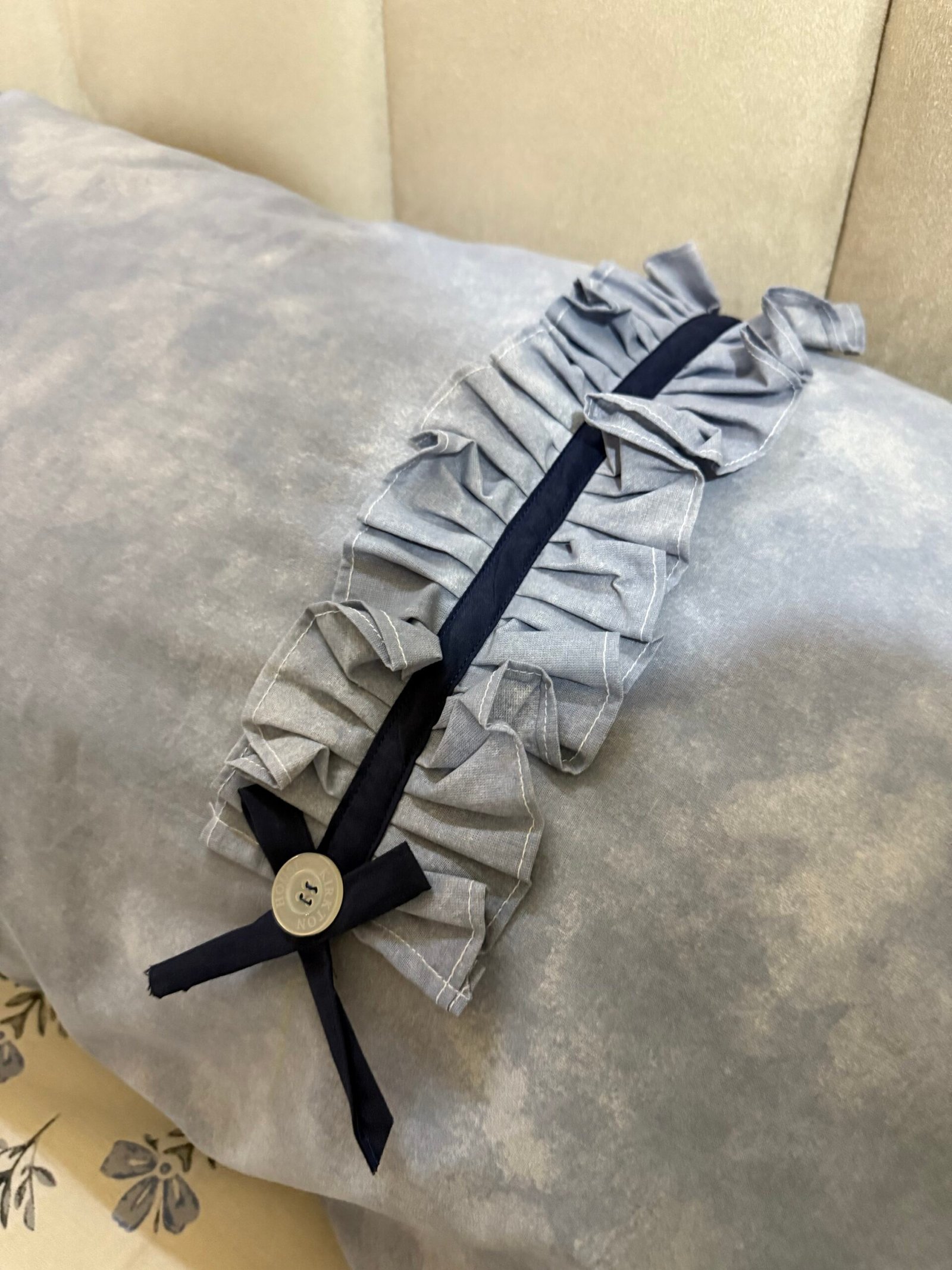 The delicate blue floral print is complemented by a beautiful ruffled border, while the matching pillowcases feature elegant frills and ribbon bow detailing. Perfect for vintage, cottage, or shabby chic interiors, this bedsheet instantly enhances your bedroom décor while ensuring everyday comfort.